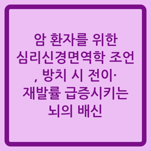 암 환자를 위한 심리신경면역학 조언, 방치 시 전이·재발률 급증시키는 뇌의 배신